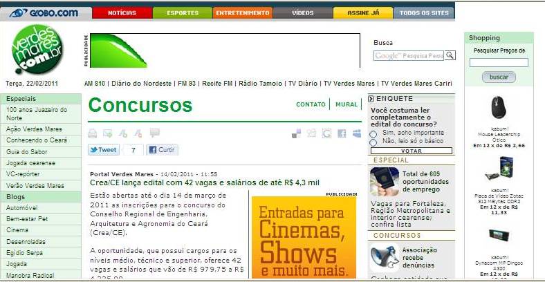Além de informar, a Verdes Mares direciona o usuário para outros sites relacionados ao tema da reportagem. O link complementa o texto e facilita a navegação.